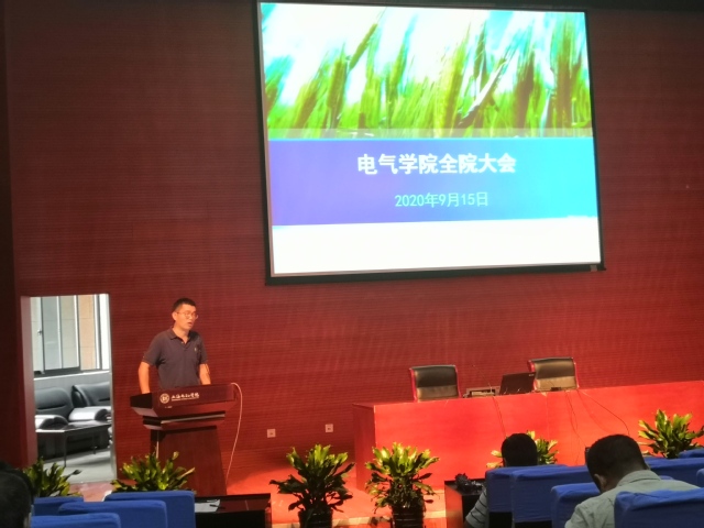 9月15日上午,电气学院2020-2021学年第一学期全院大会在图书馆报告厅召开,学院党政班子和全体教职员工参加了会议,会议由学院党委书记吕小亮主持。