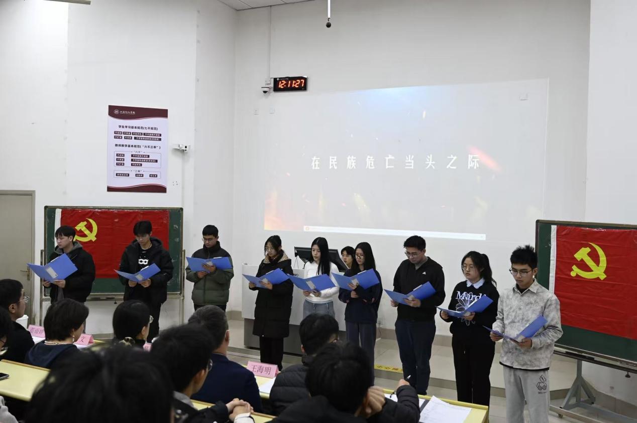 率先登场的是本科生第一小组,小组成员们迈着整齐的步伐走到台前,迅速站成一道笔直的队列。伴随着激昂振奋的背景音乐,他们的红色主题朗诵正式开始。成员们的朗诵声铿锵有力、饱含深情。激昂的音乐、震撼的画面与学员们饱含热忱的朗诵融为一体,形成了强烈的视听冲击,让在场所有人都沉浸式感受到了磅礴力量,不少学员都不自觉地挺直了腰背,眼中满是崇敬与动容。朗诵尾声,全体成员齐声高喊 “传承红色基因,践行初心使命”,洪亮的口号在会场久久回荡,赢得了台下雷鸣般的掌声。