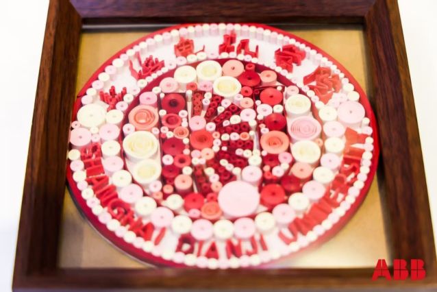 在上海进博会 ABB 展台的捐赠仪式现场,我校学生代表与中国乡村发展基金会会长、ABB 企业经理等嘉宾共同参与活动流程。现场,学生代表将与同学筹备多日的手绘ABB机器人展示板、手工纪念手作和实践作品等礼品亲手递交给爱心方——礼品上标注的 “46 秒 / 台” 机器人效率数据,凝聚着学子对企业技术的关注;每一处精心设计的手工细节,都承载着受助学子对善意的感恩与奋力成长的决心。